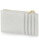 100% leather-look PU. Saffiano fine grain.Soft touch lining.Contemporary slimline design.Zip closure.Holds four credit cards.Can be decorated front and rear.Tear out label.